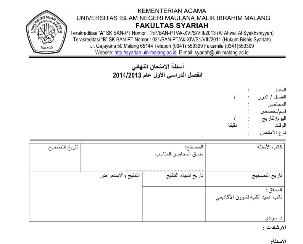 Diberitahukan kepada Mahasiswa Dan Dosen Fakultas Syariah UIN Maulana Malik Ibrahim Malang, bahwa Ujian Akhir Semester (UAS) Semester Genap Tahun Akademik 2013/2014 akan dilaksanakan: